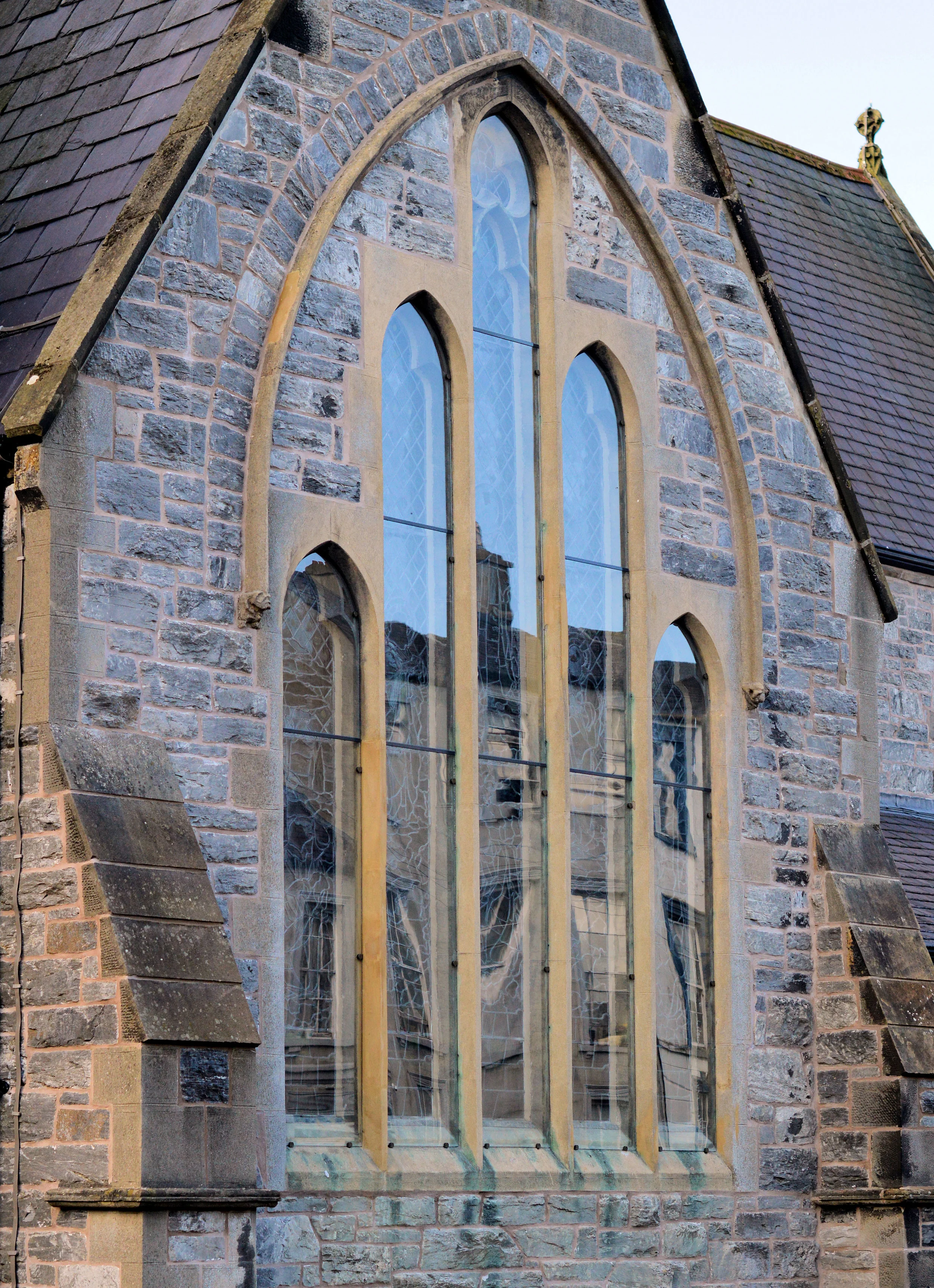 Design was by Locky Morris overseen by MacMillan and Implemented on glass by Alpha Stained Glass using various etching and painting techniques.